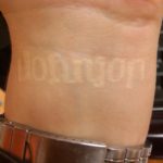It says Johnson – this is how it looks facing me, but since its an ambigram it can be read upside down as well.